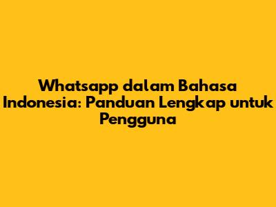 Whatsapp Dalam Bahasa Indonesia: Panduan Lengkap Untuk Pengguna