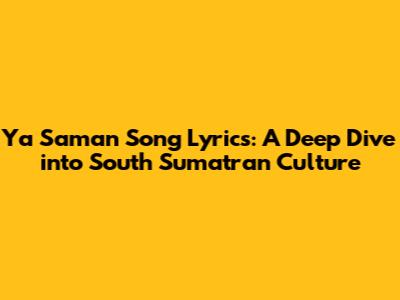 Hey guys! Ever heard of the Ya Saman song from South Sumatra? If you haven't, you're in for a treat! This article is all about diving deep into the lyrics of Ya Saman, exploring its cultural significance, and understanding why it's such a beloved song in the region. We'll break down the lyrics, talk about the history, and even touch on the meaning behind the song. So, buckle up and get ready for a fun and informative ride through the musical landscape of South Sumatra!