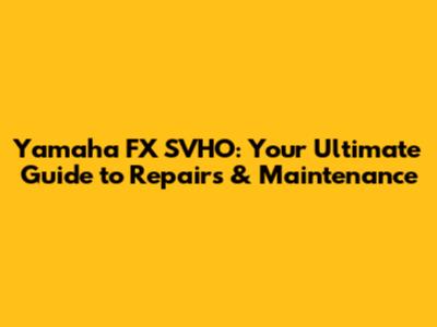 Yamaha FX SVHO: Your Ultimate Guide To Repairs & Maintenance