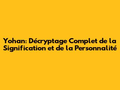 La Signification Profonde de Yohan: Un Aperçu Détaillé