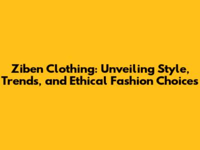 Ziben Clothing: Style, Trends, And Ethical Fashion